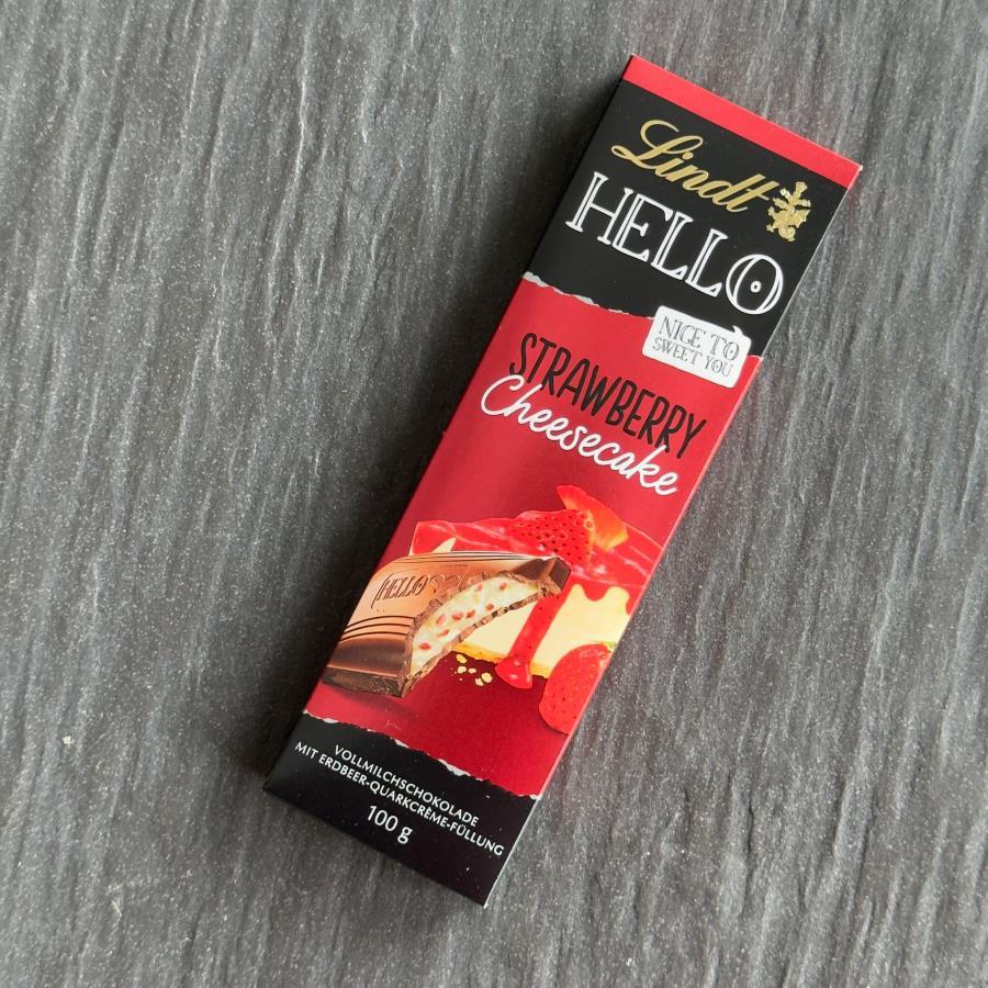 Smooth milk chocolate with a fruity, creamy strawberry cheesecake centre. Product of Switzerland.