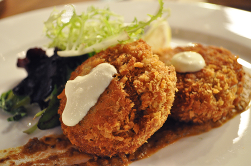 Our meal started with the Beef Carpaccio. Shaved parmesan, rocket and black truffle was served on top the thinly sliced beef. The nuttiness of the rocket and truffle went well with the beef. You needed to eat each slice of beef with some cheese so that it would be sufficiently salty. Next we had the crab cakes served with a dollop of mayonnaise and sun-dried tomato sauce. The crust was not as crispy as I had hoped, perhaps they could use those Japanese panko breadcrumbs you find in Tonkatsu restaurants. The crab meat inside was moist though I felt the seasoning could be a tad stronger.