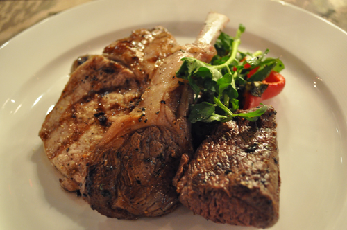 After a short 5 minute wait, the mixed grill was presented, fresh off the charcoal grill. The mixed grill comprises of a half piece of pork chop, a pork and parsley sausage, an Argentinean beef fillet mignon and an Australian lamb cutlet; I didn’t know where to start?! I decided I should go with the lightest tasting to the strongest. As I was cutting into the pork chop, I knew straight away it was tender. The meat was moist and took in the smokiness from the charcoal. The pork and parsley sausage was amazing. The flavourful sausage had a soft texture and a lovely blend of herbs. The Argentinean fillet was next in line. The grass-fed beef was tender but a tad dry. This dryness is because the fillet normally lacks the marbling and fat and furthermore grass-fed beef is also leaner. However, what grass-fed beef lacks in fat, it makes up in flavour. The beef had a good boost of umami with every bite. The lamb cutlet was an excellent way to end the meal. I usually like to leave the best for last when I eat and although everything on the mixed grill were good, the lamb just takes the cake. The meat was tender, moist, sweet and had just the right of amount of gaminess.