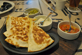 We started with the chicken quesadillas. They have it with beef as well but since we decided on their signature beef for the main, we went with the chicken version. The menu boldly states that they serve the best quesadillas in town. While I am no expert in this dish nor have I tried it at numerous places, the version at Chop House is rather pleasing. The filling consists of chicken, tomatoes and cheddar cheese cooked till the cheese is melted and the tortilla is crispy. You can opt to add the accompanying guacamole, sour cream or salsa but it is good on its own as well.