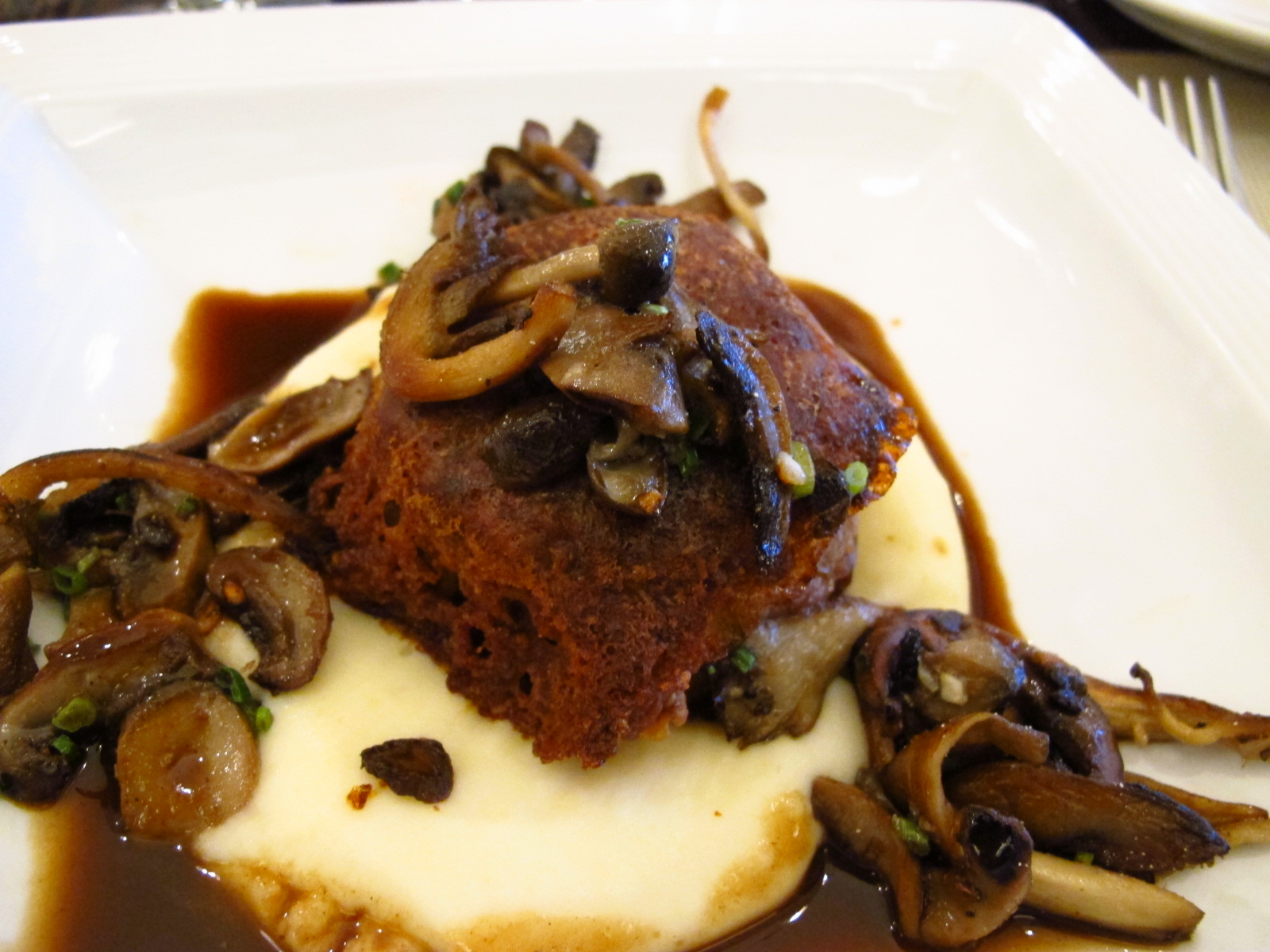The Crab Meat with Mayonnaise and Pomelo with lots of greens was extremely easy to eat and light on the belly. Next up was the Crispy Oven-baked Pork Trotter and Grilled Lamb Cutlet. Lying on a bed of mashed potato with elegant stewed mushrooms around it, the trotter was a picture of pride. Just as its name suggests, the pork trotter was indeed crispy on the outside with a rasher of bacon wrapped all around. Break it open and you will see pulled meat in there. I am guessing that the trotter was probably seasoned, cooked and its meat pulled apart. Then seasoned, shaped and wrapped with bacon before going into the oven. How the chef gets the crispiness on the outside is a mystery.